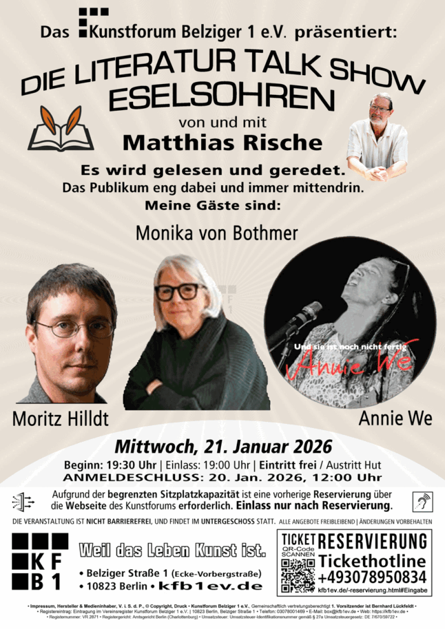 Aktuelle Termine: Literarischer Nachtsalon, Literatur Talk Show Eselsohren, Konzerte, Jazz,